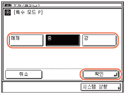 모드를 설정했어도 약간의 점이나 선이 계속 나타날 수 있습니다. 하지만 모드를 해제했을 때 보다는 복사본과 인쇄물이 훨씬 더 깨끗해집니다.