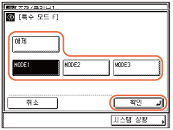 ]를 누르고 → [특수 모드 O]를 누릅니다.