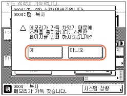 스캔한 페이지를 인쇄하려면 [예]를 누르고, 작업을 취소하려면 [아니오]를 누릅니다.