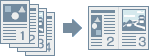 Du kan indbinde udskrevne dokumenter som en folder ved at udskrive 2 sider af et dokument på hver side af papiret, så de kan foldes på midten, og der oprettes herved en folder (4 sider i et dokument udskrives på ét ark papir).