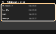Можете да проверите версията на фърмуера от работния панел на устройството. След като приключи операцията по актуализиране на софтуера, се уверете, че актуализацията е изпълнена успешно. Проверка на версията на фърмуера