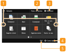 Натиснете го, за да проверите състоянието на отпечатване, да прегледате хронологията на използване или настройките на мрежата, например IP адреса на устройството. Можете също така да проверите състоянието на устройството, като например оставащо количество хартия и тонер, или дали са възниквали грешки. Екран <Статус монит.>