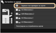 След запаметяване на настройките за хартия по подразбиране, екранът за настройки на хартията не се извежда при зареждане на хартия и винаги се използва една и съща настройка. Ако заредите различен формат или тип хартия, без да променяте настройките за хартията, устройството може да не печата правилно. За да избегнете този проблем, изберете <Задаване при зареждане на хартия> на стъпка 3 и след това заредете хартията.