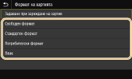 Можете да изберете размера на хартията като <Свободен формат>, което премахва необходимостта от въвеждане на настройките за размера на хартията. Задайте <Свободен формат>, когато зареждате хартия с неизвестен размер, която да се използва за копиране или когато размерът на хартията вече е регистриран в драйвера на принтера.