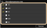 Ограничаване на показваните формати хартия за многофункционалната тава