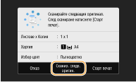 Поставете следващия оригинал върху стъклото за документи и изберете <Сканир. следв. оригин.>.