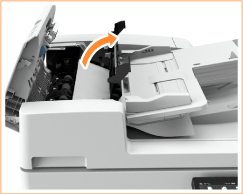 Дръпнете лоста, за да отворите капака на подаващото устройство.
