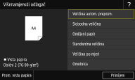 Format papira možete definirati kao <Slobodna veličina>, nakon čega ne trebate unositi postavku formata papira. Odaberite postavku <Slobodna veličina> kad umećete papir nepoznatog formata za kopiranje ili ako je format papira već registriran u upravljačkom programu pisača.