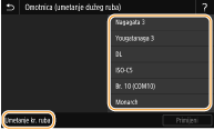 Ako ste promijenili položaj omotnica, pritisnite <Umetanje kr. ruba> ili <Umet. duž. ruba>, pa odaberite vrstu omotnice.
