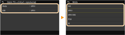 Odaberite želite li ispis na format A4 prebacivati na ispis na format LTR i obratno ako je jedan od tih formata papira umetnut, a drugi nije. Ako odaberete <Uključ.> i definirate ispis papira veličine A4 s računala, no papir te veličine nije umetnut u uređaj, dokument će se ispisati na papiru veličine Letter.