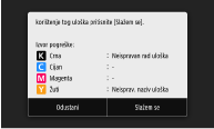 Da biste i dalje koristili tintni uložak, pritisnite <Slažem se>. Ako odaberete tu opciju, ne jamči se funkcionalnost uređaja.