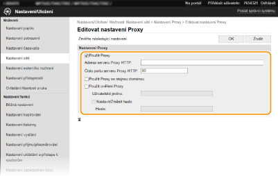Zaškrtněte políčko [Použít Proxy] a zadejte požadovaná nastavení.