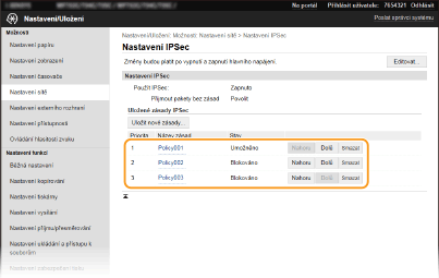 Použití ovládacího paneluPomocí možnosti <Nabídka> na obrazovce Domů také můžete povolit nebo zakázat komunikaci IPSec. <Použít IPSec>