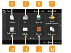 Zobrazí „oblíbená nastavení“, která byla uložena pro funkce kopírování, faxování a skenování. Přidání tlačítek na obrazovku Domů