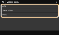 Jestliže si velikosti papíru, které často používáte, uložíte pod tlačítka <S1> až <S3>, můžete je vyvolat jediným dotekem. Uložení vlastní velikosti papíru