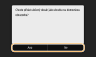 Vyberete-li možnost <Ano>, zobrazí se zpráva. Zkontrolujte zprávu a pak vyberte možnost <OK>. Kombinace uložených nastavení bude přidána na obrazovku Domů jako tlačítko zástupce.