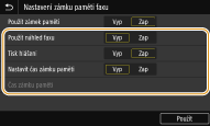 Funkce <Použít náhled faxu> a <Nastavit čas zámku paměti> nelze aktivovat současně.