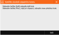 Při výměně zásobníku odpadního toneru je celý proces popsán také na obrazovce. Při následujícím postupu kontrolujte informace zobrazené na obrazovce.