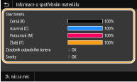 Zbývající množství toneru v kazetách, v zásobníku odpadního toneru a svorek zkontrolujte podle následujícího postupu.