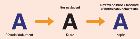Pokud není uspokojivá kvalita kopií černého nebo do černa zbarveného textu, můžete tímto nastavení zlepšit reprodukci barev.