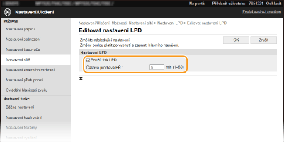 Políčko zaškrtněte, chcete-li tisknout pomocí protokolu LPD. Pokud tisk LPD nepoužíváte, zaškrtnutí políčka zrušte. [Použít tisk RAW]