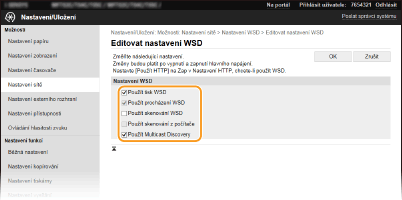 Políčko zaškrtněte, chcete-li získávat informace o zařízení z počítače pomocí protokolu WSD. Toto políčko se automaticky zaškrtne, je-li zaškrtnuto políčko [Použít tisk WSD]. [Použít skenování WSD]