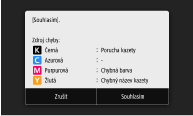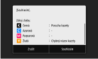 Chcete-li tonerovou kazetu nadále používat, stiskněte <Souhlasím>. Vyberete-li tuto volbu, není zaručen správný chod stroje.