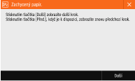 Pokud na obrazovce s upozorněním, že se zachytil papír, stisknete tlačítko <Zavřít>, v některých případech bude možné pokračovat v používání stroje a zadávat nastavení, aniž byste zachycený papír okamžitě odstranili.