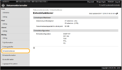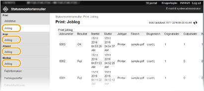 Uanset indstillingen for styring af afdelings-id'er vises alle dokumenter til udskrivning, der i øjeblikket udskrives eller venter på at blive udskrevet.