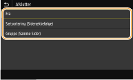 <Sætsortering (Siderækkefølge)> eller <Gruppe (Samme Sider)>