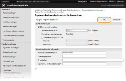 Sommige instellingen kunnen uitsluitend worden gewijzigd als u zich aanmeldt in de systeembeheerdersmodus.