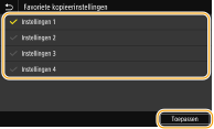 Schakel de selectievakjes in voor alle instellingen die op het scherm Start moeten worden weergegeven en selecteer <Toepassen>.