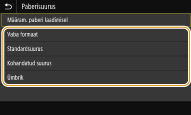 Kui sisestatud paberi formaati ei kuvata, valige vahekaart <Muud suurused>.