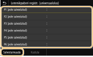 Salvestades sageli kasutatavad paberiformaadid nuppude <S1> kuni <S3> alla, saate need laadida ühe puutega. Kohandatud paberiformaadi salvestamine