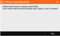 Kui jääktooneri mahuti on täis või hakkab täis saama, kuvatakse teade, milles palutakse teil valmistada ette uus jääktooneri mahuti või jääktooneri mahuti välja vahetada. Valmistage ette uus jääktooneri mahuti või vahetage jääktooneri mahuti välja vastavalt kuvatavale teatele.