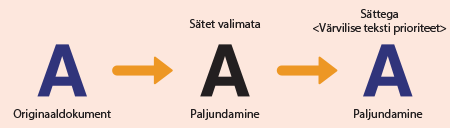 Värvilistel dokumentidel tekstivärvi taasesituse reguleerimine