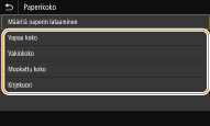Jos lisätyn paperin kokoa ei näytetä, valitse <Muut koot> -välilehti.
