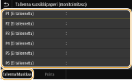 Jos tallennat usein käyttämäsi paperikoon painikkeisiin <S1>–<S3>, voit hakea ne yhdellä kosketuksella. Mukautetun paperikoon tallentaminen