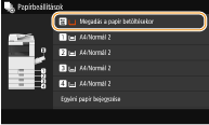 Az alapértelmezett papírbeállítás bejegyzése után a papírok behelyezésekor nem jelenik meg a papírbeállító képernyő, a készülék mindig ugyanazt a beállítást alkalmazza. Ha a papírbeállítások módosítása nélkül helyez be más méretű vagy típusú papírt, akkor a készülék valószínűleg nem megfelelően fog nyomtatni. A probléma kikerüléséhez válassza a <Megadás a papír betöltésekor> lehetőséget a 3. lépésben, majd töltse be a papírt.