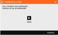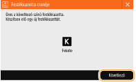 Ha kezd kifogyni a festék, vagy már ki is fogyott, üzenet jelenik meg, amely arra kéri, hogy készítsen elő egy új festékkazettát, vagy hajtsa végre a festékkazetta cseréjét. Készítsen elő új festékkazettát, vagy hajtsa végre a festékkazetta cseréjét a megjelenő üzenetnek megfelelően.