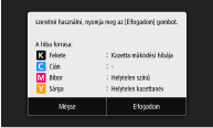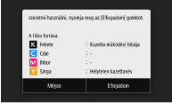 Nem érzékelhető helyesen a festék mennyiségére vonatkozó adat. Előfordulhat, hogy nem Canon gyártmányú vagy nem megfelelő nevű kazetta van betéve. Ha ezt a kazettát szeretné használni, nyomja meg az [Elfogadom] gombot. A hiba forrása