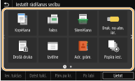 Ekrānam Sākums varat pievienot īsinājumpogas bieži lietotām funkcijām, piemēram, <Kopēšana>, <Fakss> un <Skenēšana>. Piemēram, uzdevumus varat veikt ātrāk un efektīvāk, ja vienai pogai piešķirat veselu virkni iestatījumu (piemēram, “Skenēt abas dokumenta puses, saglabāt to kā izteikti saspiestu PDF failu un nosūtīt pa e-pastu”).