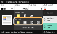 Lai vienā lappusē apvienotu attēlus no 9 vai 16 lapām, drukājot PDF failu, izvēlieties <Iestatīt PDF datus>