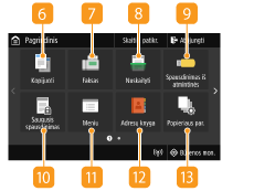 Rodyti „parankinius parametrus“, kurie priskirti kopijavimui, siuntimui ir priėmimui faksu ir nuskaitymui. Mygtukų pridėjimas ekrane Pagrindinis