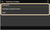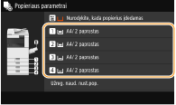 Jeigu užregistruojate dažnai naudojamo popieriaus formatą naudodami mygtukus <S1>–<S3>, galite iškviesti juos vienu lietimu. Pasirinktinio popieriaus formato registravimas