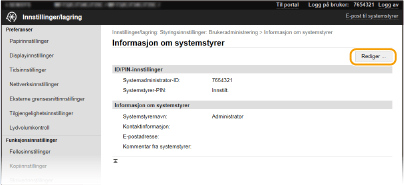 Noen innstillinger kan bare endres når du er logget på i systemstyrermodus.