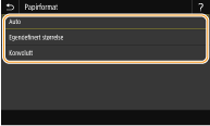 Hvis du registrerer papirformatene du bruker ofte på knappene <S1> til <S3>, kan du hente dem frem med ett trykk. Registrere et egendefinert papirformat