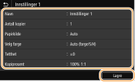 Etter at du har hentet innstillingskombinasjonen kan du også endre kopiinnstillingene etter behov.