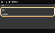 Velg <Bok> eller <Kalender>