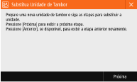 Ao efetuar o procedimento que se segue, o ecrã apresenta também as instruções de substituição da unidade de tambor, que serão úteis para se certificar de que está a efetuar bem o procedimento.